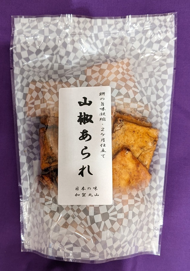 絶品風味・上品でさわやかな味わいは丸山社長が世界一の香辛料と推薦する品です。噛む程に香ばしく、餅の旨味を丸大豆醬油味が引き出して、石挽き山椒のの香ばしさとのマリアージュが、お口の中で完結します。噛む程に香る旨味を堪能ください。 そのこだわりは、加賀の寒仕込み製法を礎とした伝統製法にて、お餅の旨味を凝縮して煎り焼きにてサクサク香ばしく仕上げた。味付けは丸大豆醤油を炊き込み・きび糖を少々加えて、醤油の角あたりを和らげながらも濃いはっきりした旨味ある味わい仕立て。2カ月仕立ての伝統の味。 *醤油味は、金沢丸大豆醤油&きび糖だけのシンプルでさっぱりした香ばしさ。 米:石川県産もち米、水:霊峰白山の伏流水イオン水、技:二度搗き仕上げの餅、低温熟成乾燥・石窯焼き、環境:24H365日マイナスイオンシャワーが降り注ぐ工場に原材料をねかせて活性化させて、人も水も活性化して、こだわり製品を作り出します。
