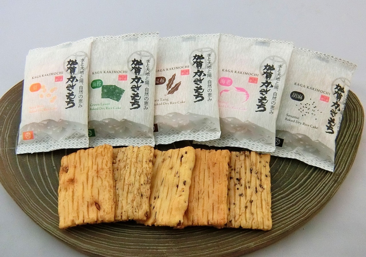 加賀かきもち醬油味・袋入個包5種5枚¥810賞味期限90日無添加