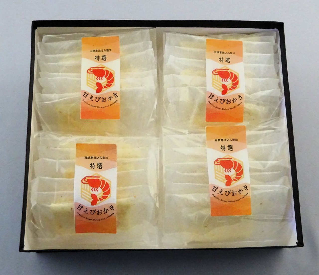 甘えびおかき・塩味48枚:24枚箱2段¥4320賞味期限90日無添加