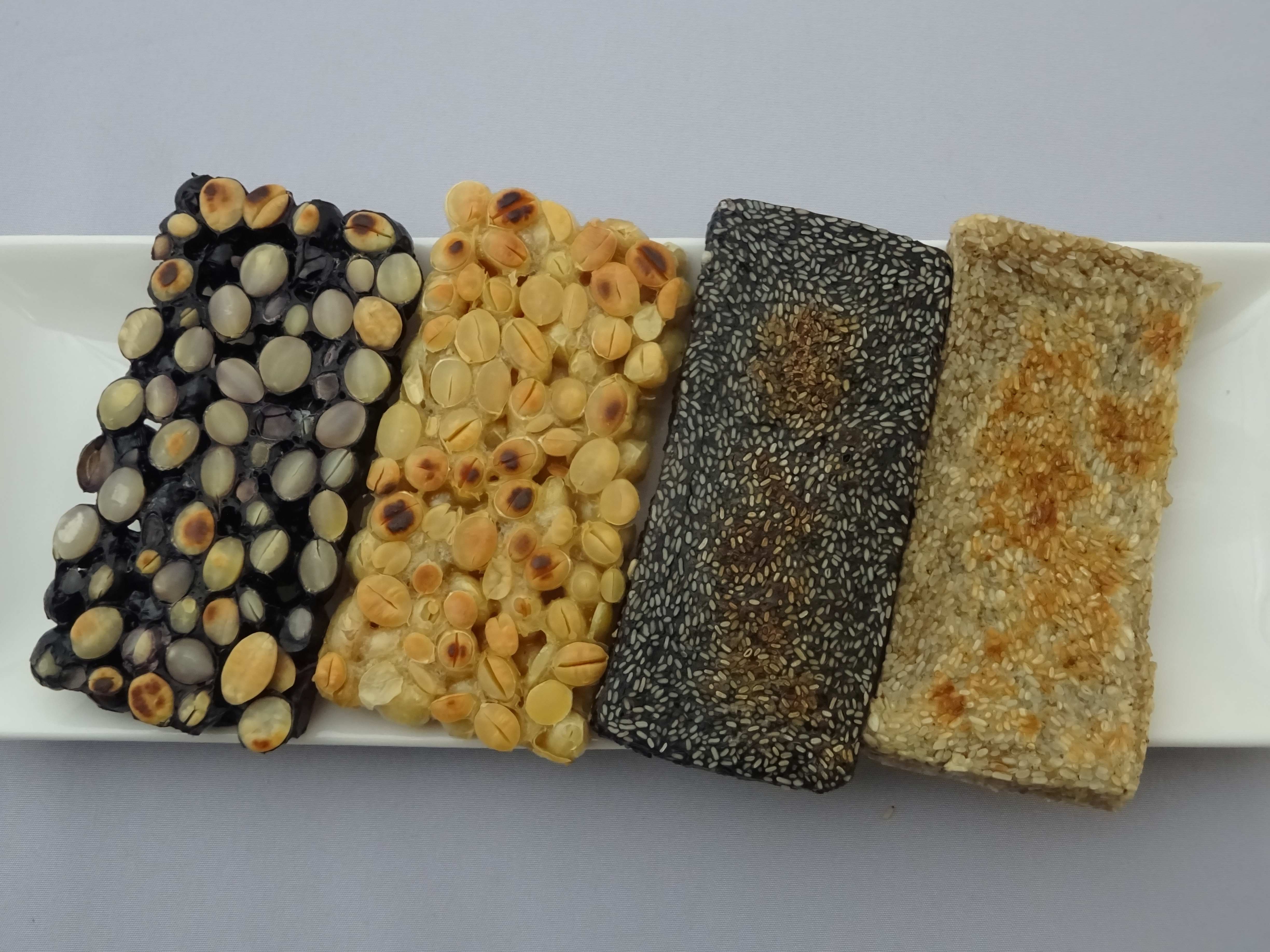 豆&胡麻&の旨味を凝縮:そのまま食べる元気の素。噛めば噛む程に味が出る:イソフラボン&セサミン&アントシアニン。