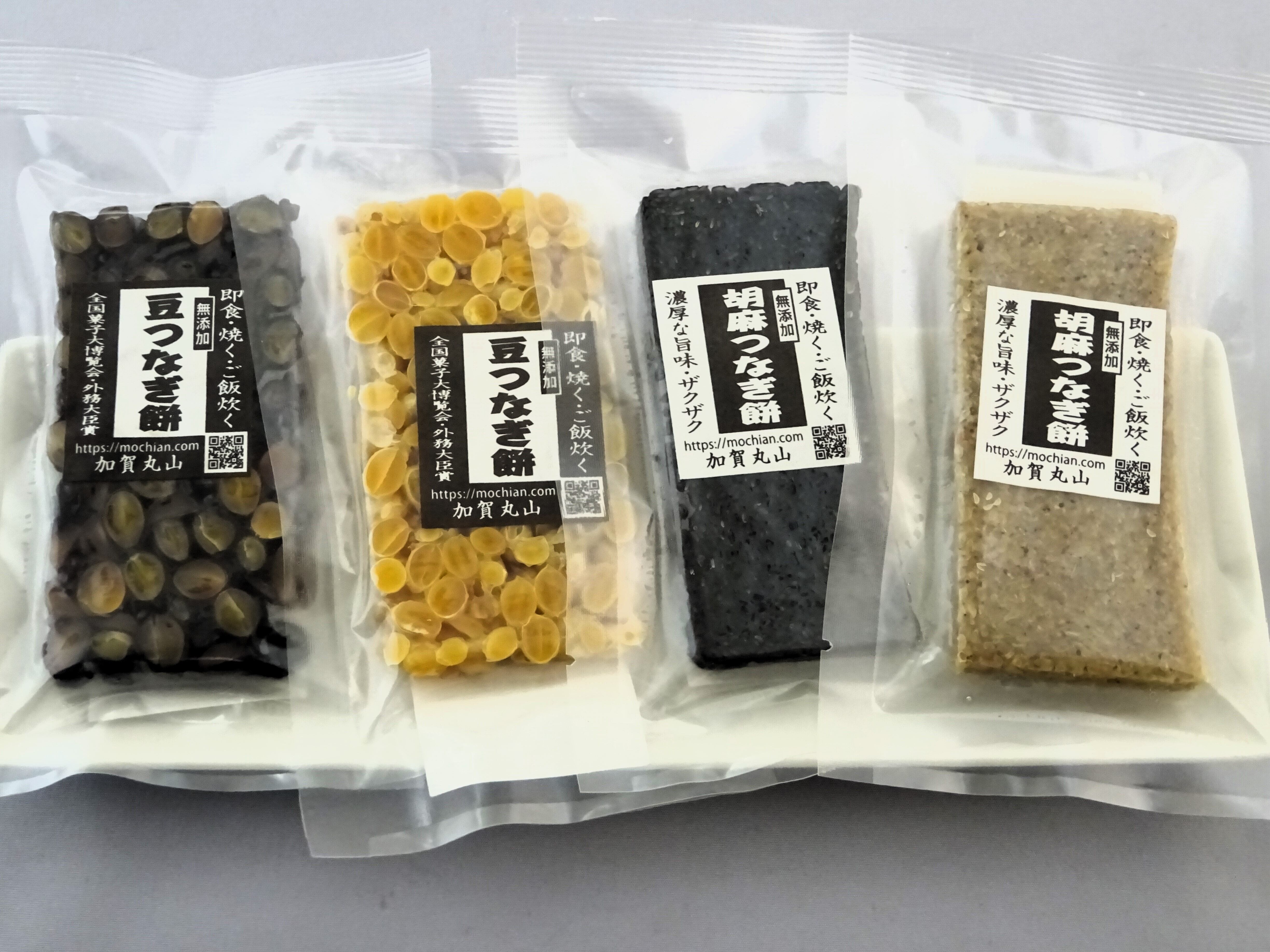つなぎ餅4種(黒豆・大豆・黒胡麻・白胡麻)無添加。