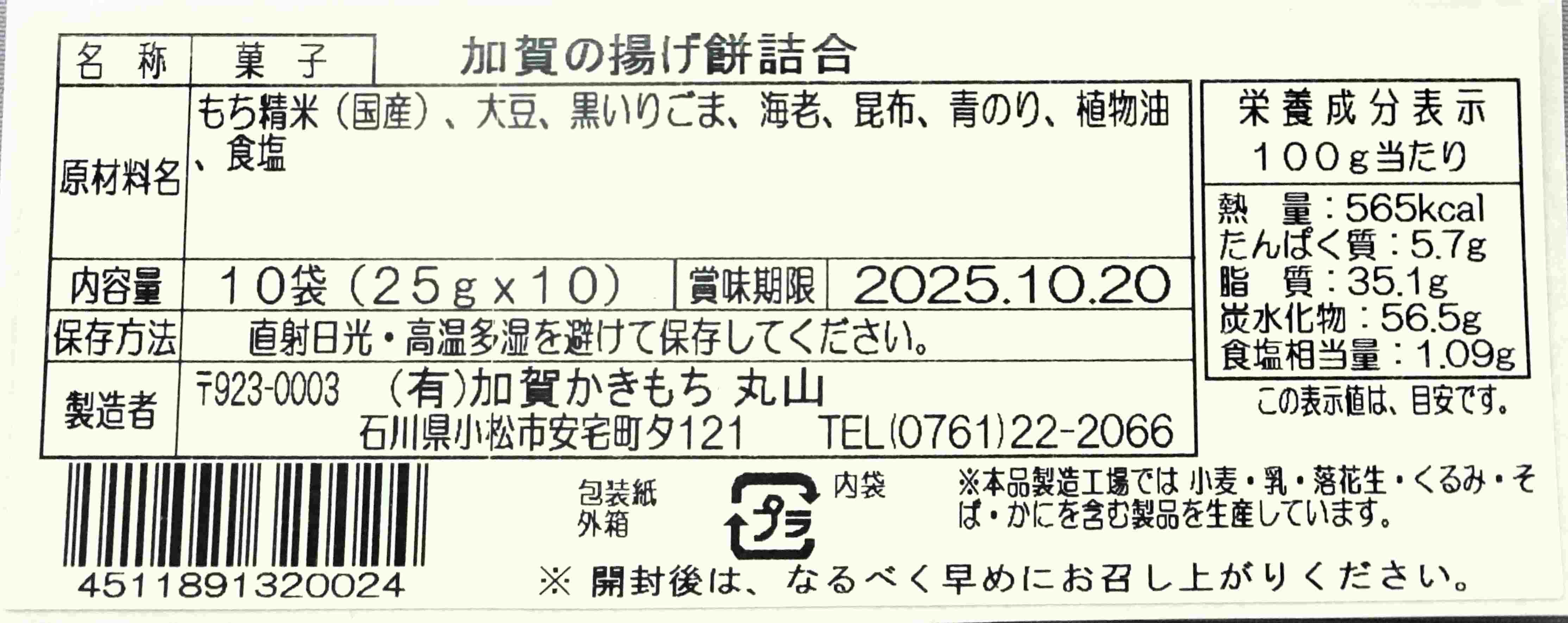 * アルコール・着色料・旨味調味料・保存料・上白糖・防湿剤は使用していません。 米:石川県産もち米、水:霊峰白山の伏流水イオン水、技:二度搗き仕上げの餅、低温熟成乾燥・石窯焼き、環境:24H365日マイナスイオンシャワーが降り注ぐ工場に原材料をねかせて活性化させて、人も水も活性化して、こだわり製品を作り出します。