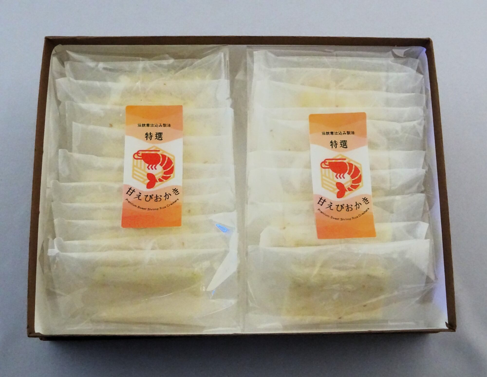 甘えびおかき・塩味18枚箱¥3240賞味期限90日無添加