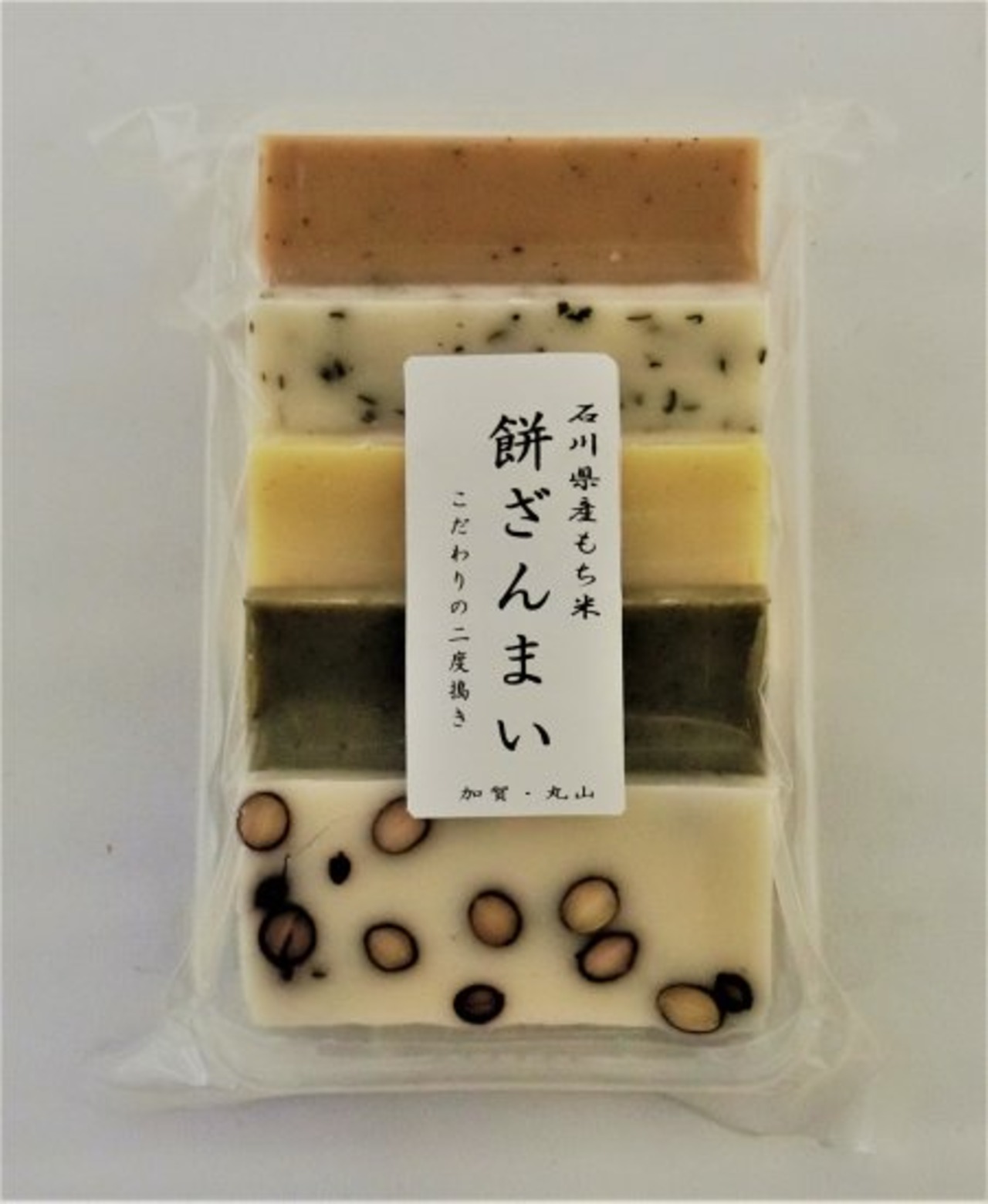 餅ざんまい5種・塩味25枚(1250g):賞味期限常温21日・冷蔵50日・冷凍180日。*5種:黒豆・よもぎ・あわ・昆布・栃の実。